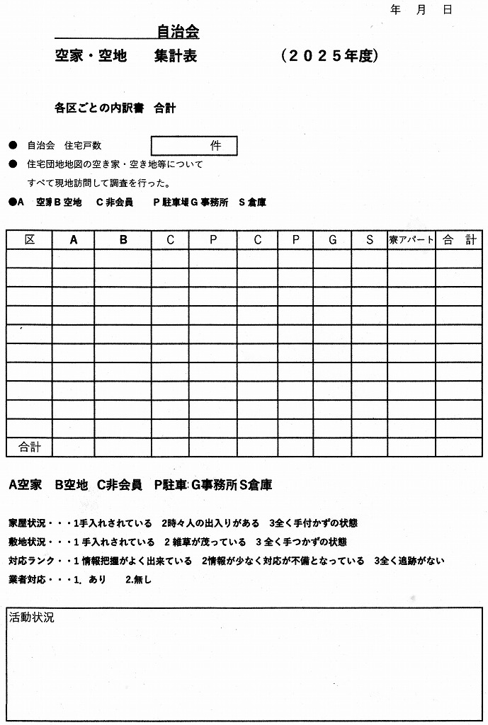 各自治会は、自治会で対象物件のリストアップを図り、最終的には、そのデ