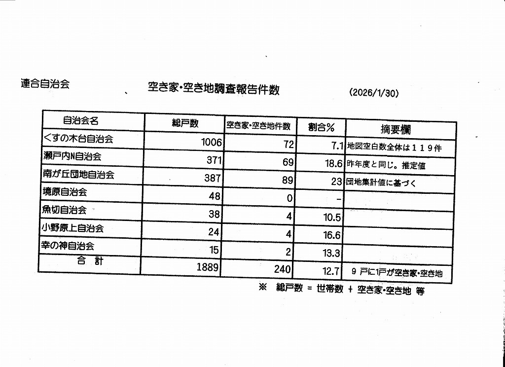 各自治会からの報告に基づき集計します。