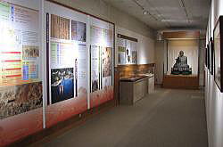2階は、宮島ゆかりの諸家の書画、屏風、古絵図、古写真、案内記、古文書など、主に江戸時代以降の歴史資料や土器類などの考古資料、約300点を展示しています。宮島芝居や富くじに関する資料、名所図会などは信仰と観光の島、宮島を理解するうえで欠くことができません。