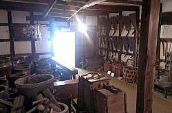 壺、釜、桶や山子鋸・滑車などの民具、約200点を展示しています。中でも、弘法大師ゆかりの弥山霊火堂からおろした消えずの火の大釜(昭和20年10月)が目を引きます。